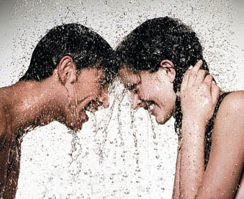 洗鴛鴦浴也太誇張了吧!! 而且是淋浴噎!!靠,不管,我半好奇的走近我的浴室隔牆仔細聆聽~